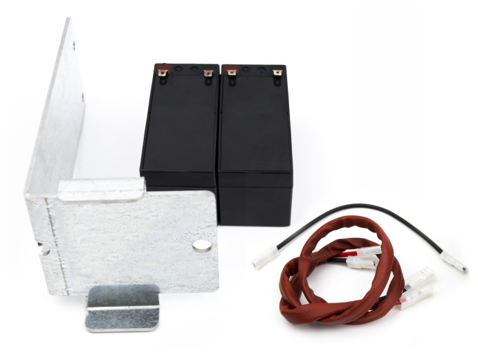Комплект для аварийного питания автоматики откатных ворот с 24-вольтовым электродвигателем. Ёмкость аккумуляторов 2*1,3 Ah.  Пластина крепления аккумуляторов в комплекте.