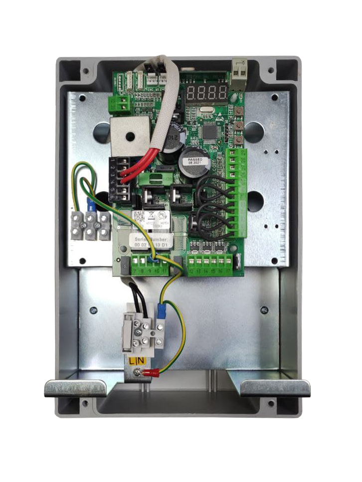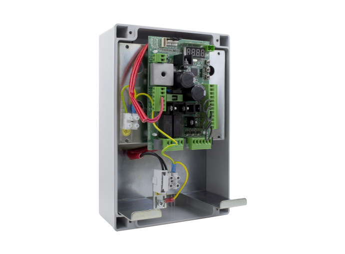 Универсальный блок управления с LED дисплеем. Применяется для 1 или 2-х приводов на 24V с/без энкодера. Блок управления с боксом. Выбор типа привода (откатные, распашные, шлагбаумы), с автоматической загрузкой всех параметров автоматики, автоматическим программированием всех входов / выходов и вариантов оптимальной работы привода. Возможность настройки до 99 рабочих параметров, таких как сила, скорость, скорость и продолжительность замедления, настройка фотоэлементов и т.д. Возможность самостоятельной настройки типа работы каждого входа и т.д. Встроенная радиокарта 433 МГц (Rolling код код или фиксированный) с памятью до 100 пультов и возможностью клонирования.